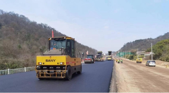 3月7日上午,在G330一期錢鋪段路面上,數臺攤鋪機和壓路機正在進行瀝青攤鋪和路面平整工作,經過工人們數個小時的連續奮戰,順利完成試驗段瀝青下面層鋪筑任務,意味著G330銅陵段一級公路改建工程(一期)正式進入瀝青路面施工階段。