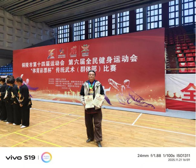 11月21日,由銅陵市人民政府主辦,銅陵市教育和體育局、銅陵市體育總會承辦的第十四屆運動會、第六屆全民健身運動會“體育彩票杯”傳統武術(群體部)比賽在銅陵市體育中心淮河路體育館如火如荼舉行。
