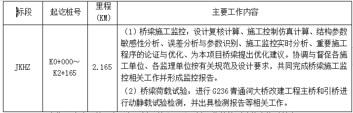 2.9 服務(wù)期:自合同簽訂之日起至橋梁施工監(jiān)控及橋梁荷載檢測(cè)驗(yàn)收合格后結(jié)束。
