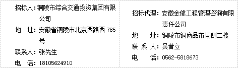 2.招標人:銅陵市綜合交通投資集團有限公司