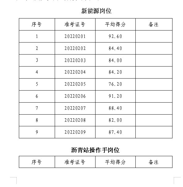 根據(jù)2022年7月25日發(fā)布的《銅陵市綜合交通投資集團(tuán)有限公司公開(kāi)招聘人員公告》規(guī)定,我公司已于2022年9月7日開(kāi)展新能源及瀝青站操作手崗位的面試工作,現(xiàn)將參加考試的人員面試成績(jī)公示如下: