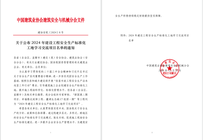 全國建設工程安全生產標準化工地學習交流項目,原稱“國家AAA級安全文明標準化工地”,是住建部批準的全國范圍內建筑安全文明施工領域的最高獎項,是“大城市”項目投標加分的重要因素之一,對項目安全生產預防措施、職業健康安全管理體系的運行、現場安全生產標準化措施等綜合管理水平有著很高要求。作為長江經濟帶和長三角一體化發展的關鍵節點工程,G3銅陵長江公鐵大橋憑借其高效施工、技術創新和安全生產標準化管理,被中國建筑業協會建筑安全與機械分會列入《2024年建設工程安全生產標準化工地學習交流項目名單》,成為全國基建領域的安全管理典范。